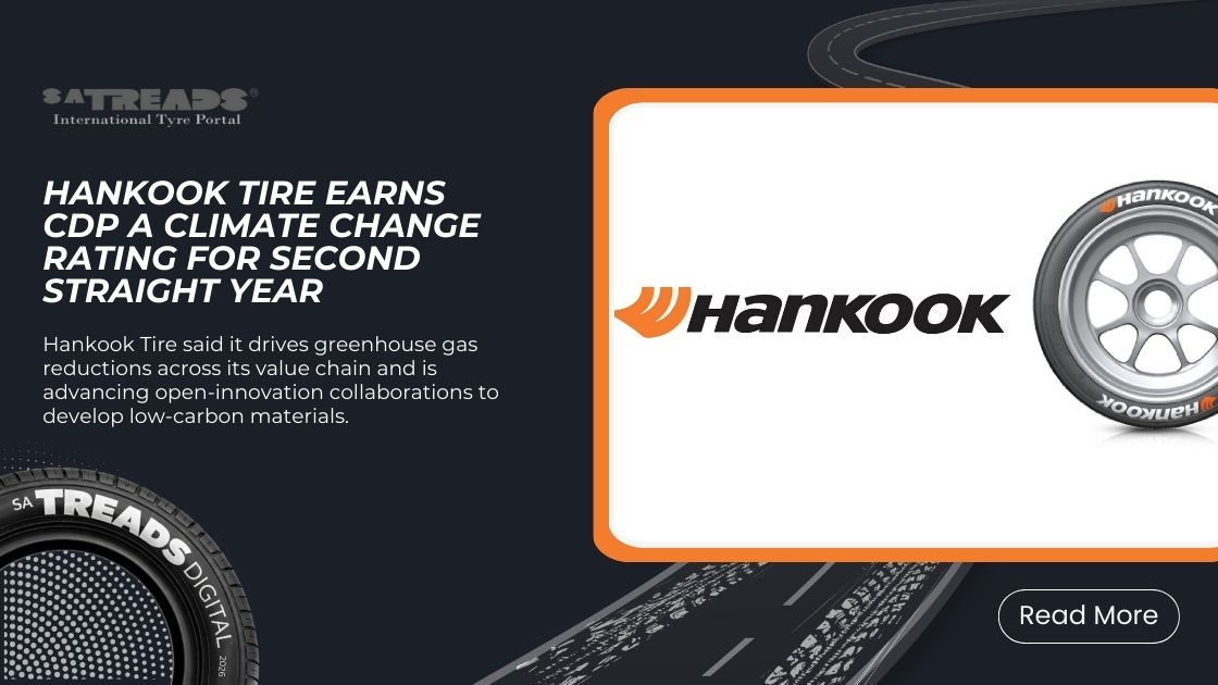 Hankook Tire received an A rating in the Climate Change category from the Carbon Disclosure Project (CDP) for the second consecutive year. The CDP climate rating places Hankook Tire among global leaders in climate action and transparency.